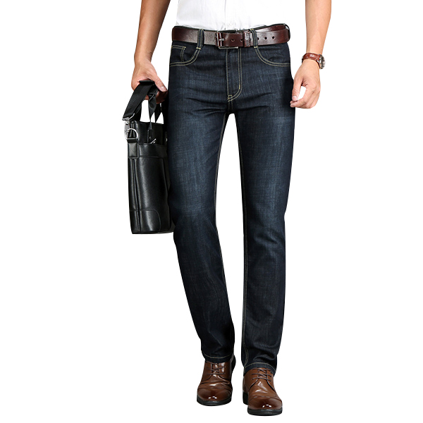 Black Milltary Bussiness Casual Straight Thin Jeans for Men