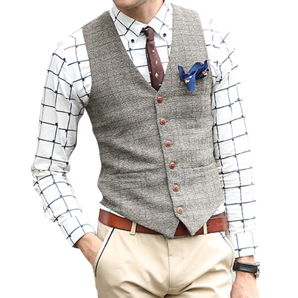 British Style Bussiness Casual Chest Single Pocket Checked Vest for Men